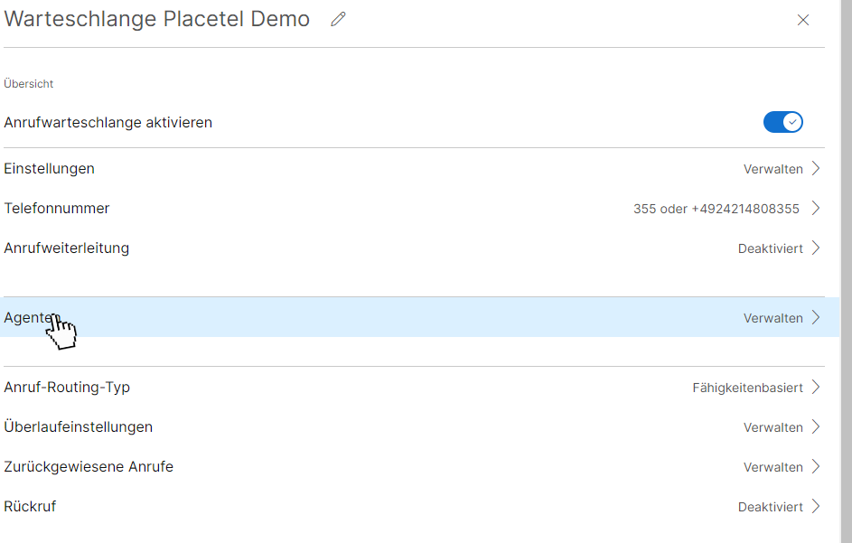 Abhängig von dem ausgewählten Anruf-Routing-Typ können Sie die Rangfolge und die Fähigkeiten (Skill-basiertes Routing) Ihrer Agenten festlegen und ändern.