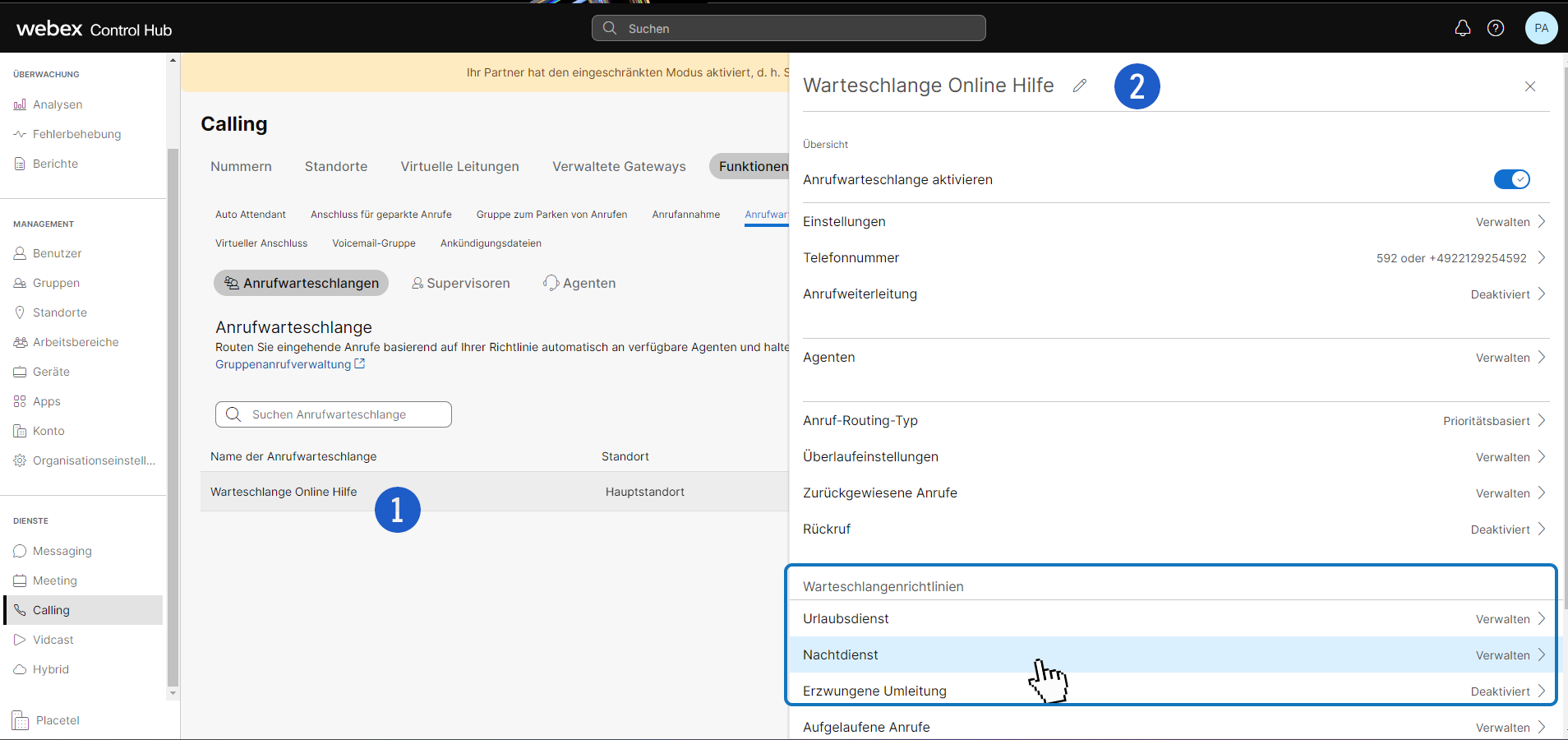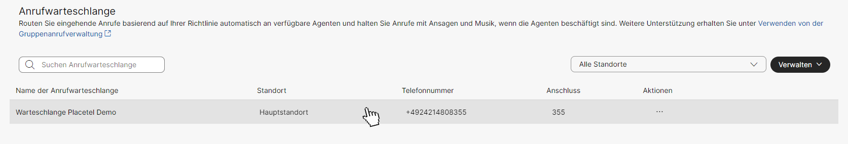 Warteschlangen werden bei Webex für Placetel im Control Hub angelegt.