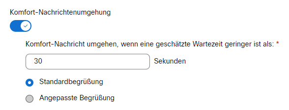 Setzen Sie ein Häkchen bei Begrüßung ist obligatorisch, um immer eine Begrüßung abzuspielen. Ist das Häkchen nicht, wird keine Begrüßung abgespielt, wenn eine Mitarbeiter verfügbar ist.