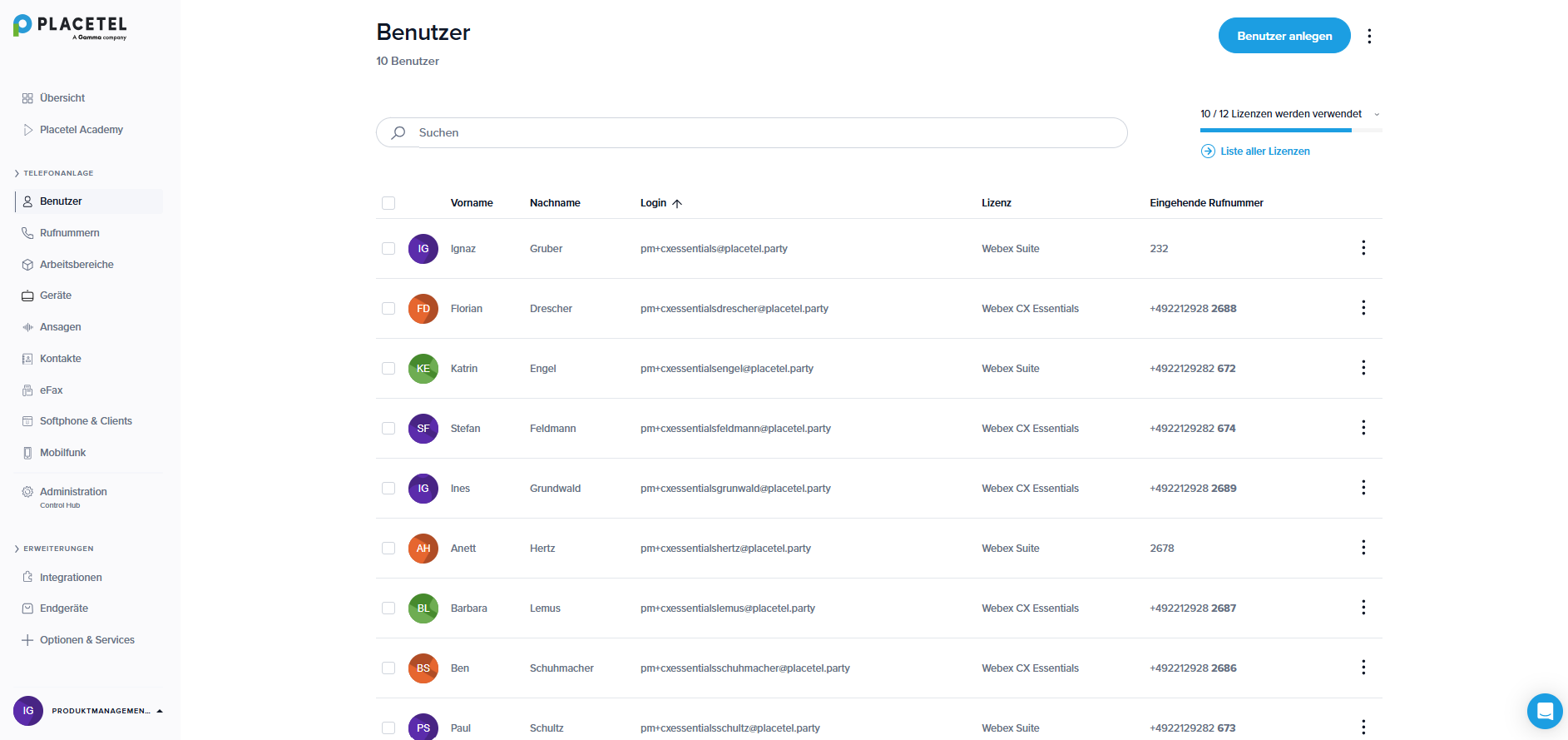 - Ihre User/Mitarbeiter zu Webex für Placetel einladen