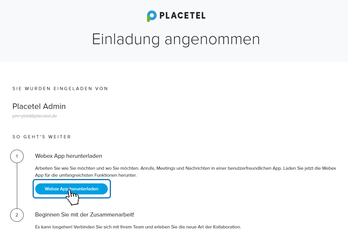 Sollten Sie einen User zu Webex eingeladen haben, so erhält dieser auch die Möglichkeit sich Webex herunterzuladen, nachdem der User sich ein Passwort gesetzt hat.