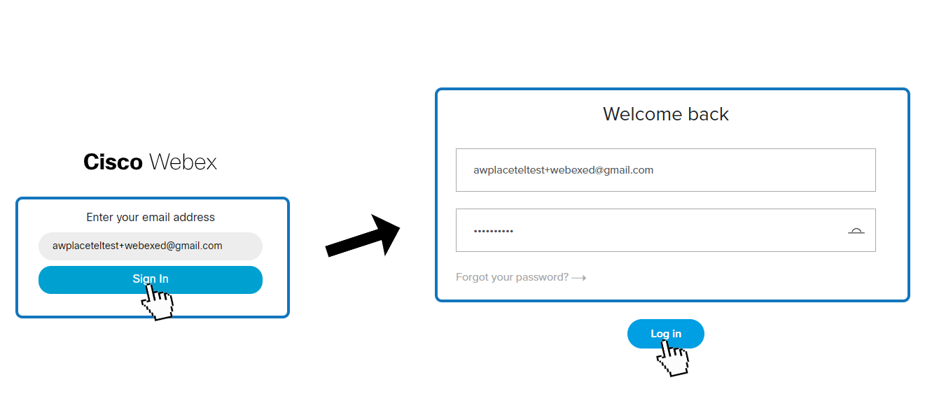 1.) Die Einstellungen werden über das Webex User Portal vorgenommen. Dieses erreichen Sie über diesen Link: user.webex.com/webappng/hub/welcome.