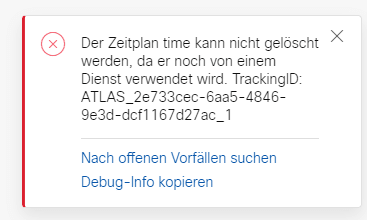Zeitpläne können erst dann gelöscht werden, wenn Sie von keiner anderen Funktion/ keinem anderen Dienst verwendet werden.