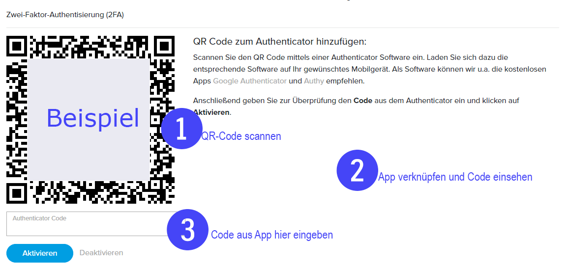 Sie können hier einen Authentificator App Ihrer Wahl nutzen. Wir empfehlen: Google Authentificator oder Authy