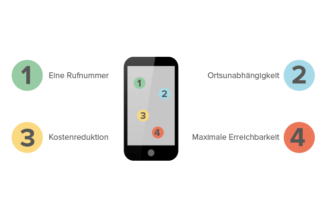 Dadurch können Smartphones der Mitarbeiter als vollwertige Nebenstelle genutzt werden. Der Vorteil dabei ist, dass jeder Mitarbeiter durch diese innovative Funktion lediglich eine Nummer besitzt, egal ob er unterwegs auf dem Handy oder im Büro angerufen wird.