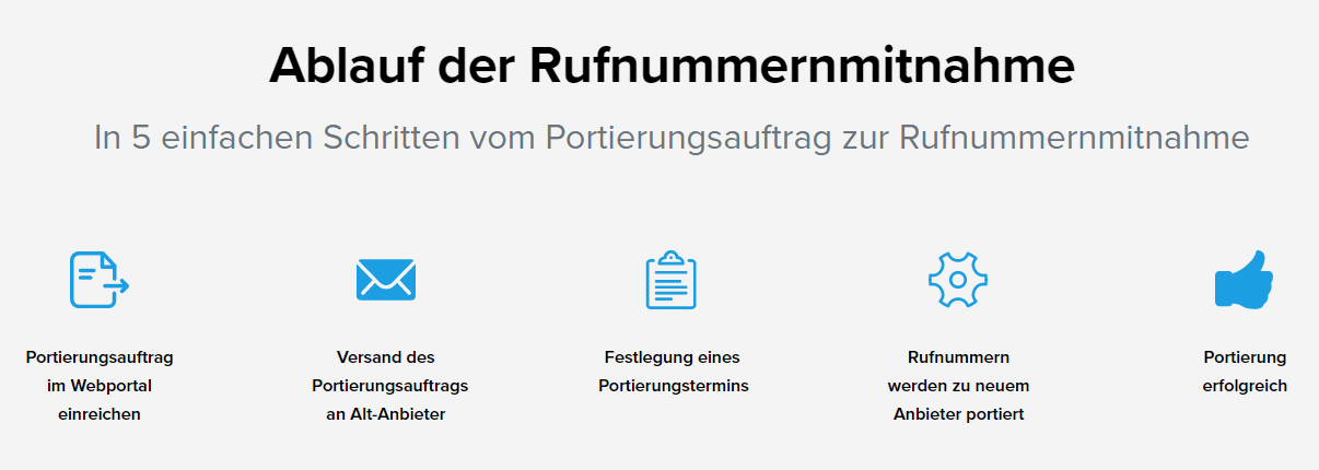 Die Rufnummernportierung kann von wenigen Tagen bis zu einigen Wochen dauern. In jedem Fall sollten Sie genügend Vorlaufzeit für die Portierung Ihrer bestehenden Rufnummern einplanen und eventuelle Kündigungsfristen bei Ihrem Altanbieter berücksichtigen.
