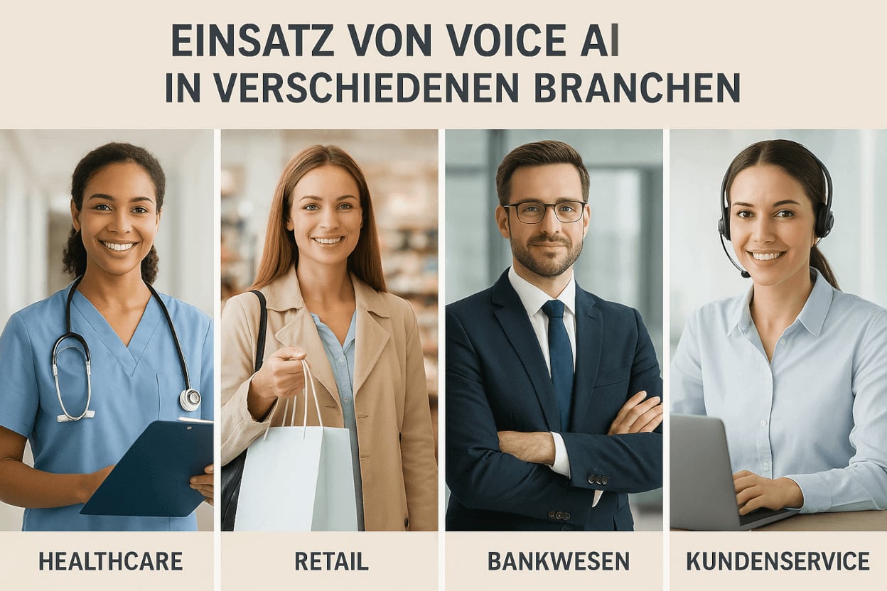 Voice AI findet in vielen Branchen Anwendung und erleichtert sowohl Unternehmen als auch Endnutzern die Interaktion über Sprache. Hier ein paar Beispiele aus der Praxis: