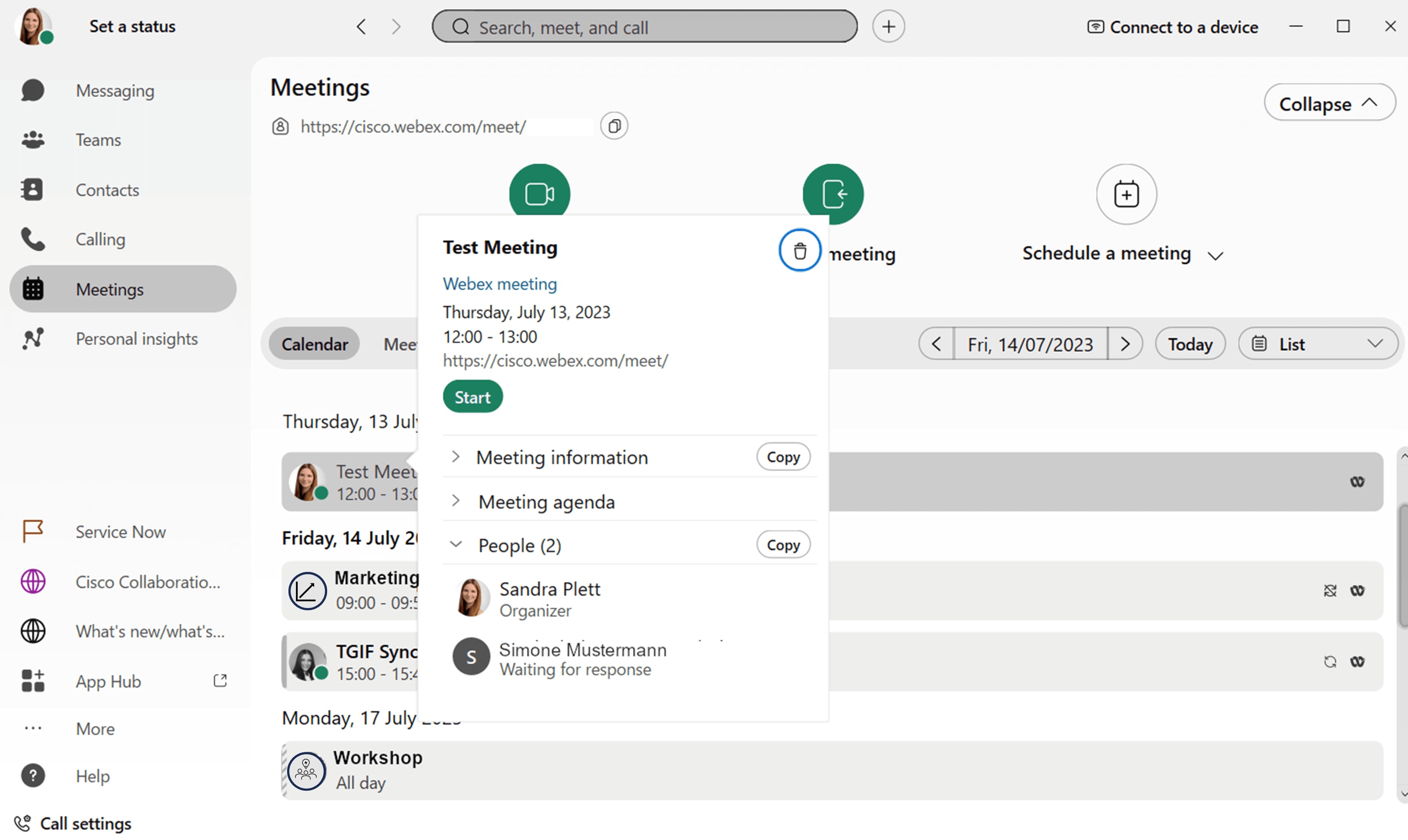 Haben Sie bereits ein Webex-Konto, können Sie das anstehende Meeting auch ganz einfach über die Suchleiste oder Ihre Meeting-Liste auf der Webex-Site aufrufen. Gehen Sie dafür wie folgt vor:
