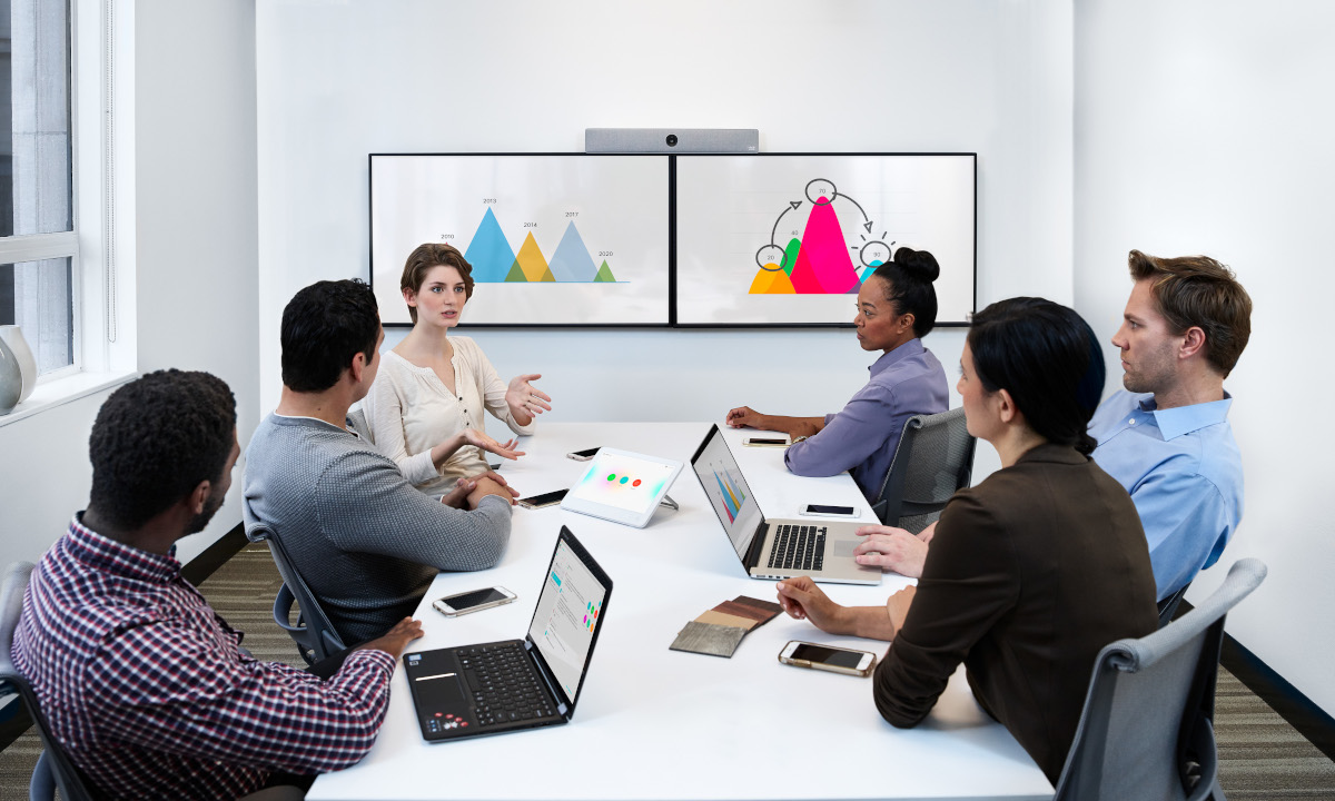 Hybride Arbeit der neuen Generation – verbinden Sie Teams in kleinen Arbeitsplätzen.