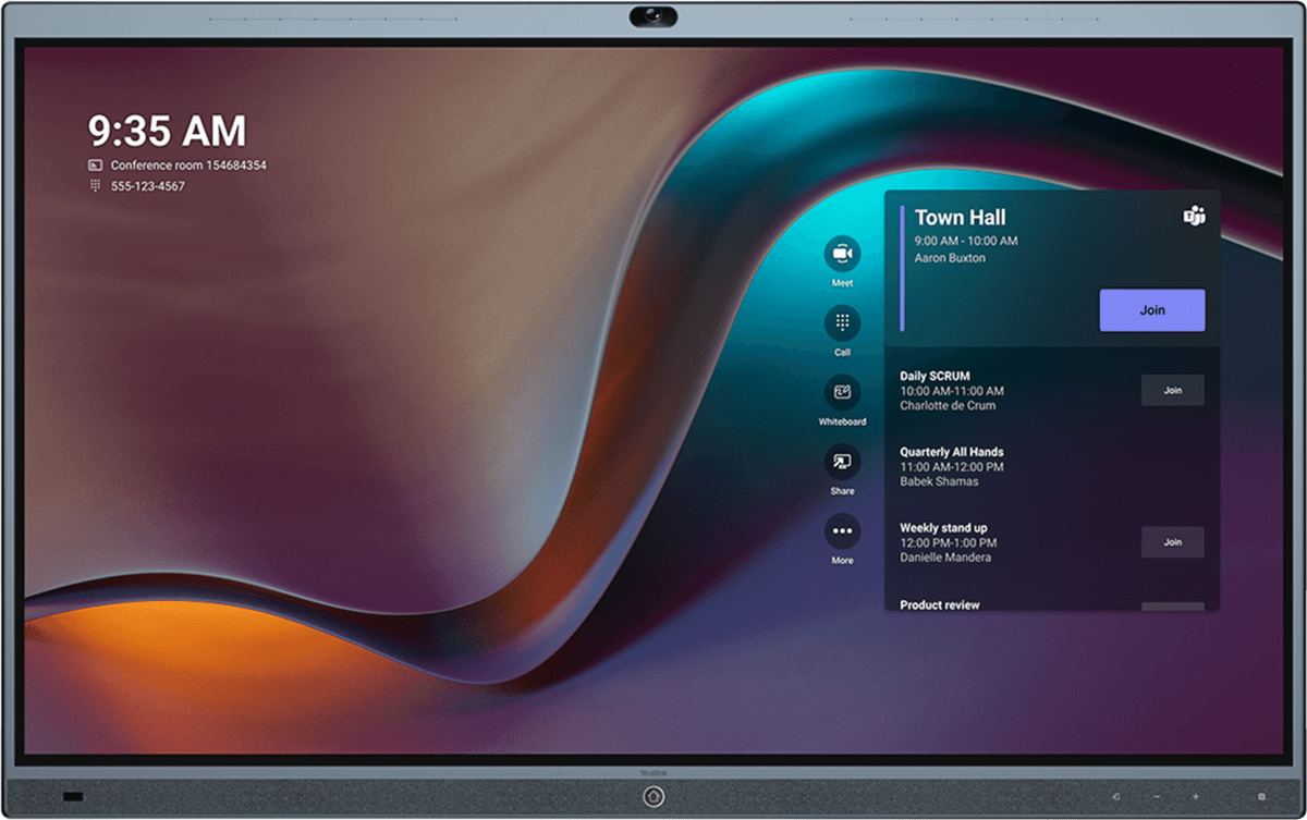 Das Yealink MeetingBoard 86 ist für eine einfache und schnelle Einrichtung konzipiert. Mit nur wenigen Schritten ist das System betriebsbereit und lässt sich nahtlos in bestehende Microsoft Teams-Umgebungen integrieren. Die intuitive Benutzeroberfläche macht die Bedienung selbst für Erstnutzer unkompliziert und ermöglicht den direkten Zugriff auf Meetings, Kalender, die Freigabe von Inhalten, Whiteboards und vieles mehr.