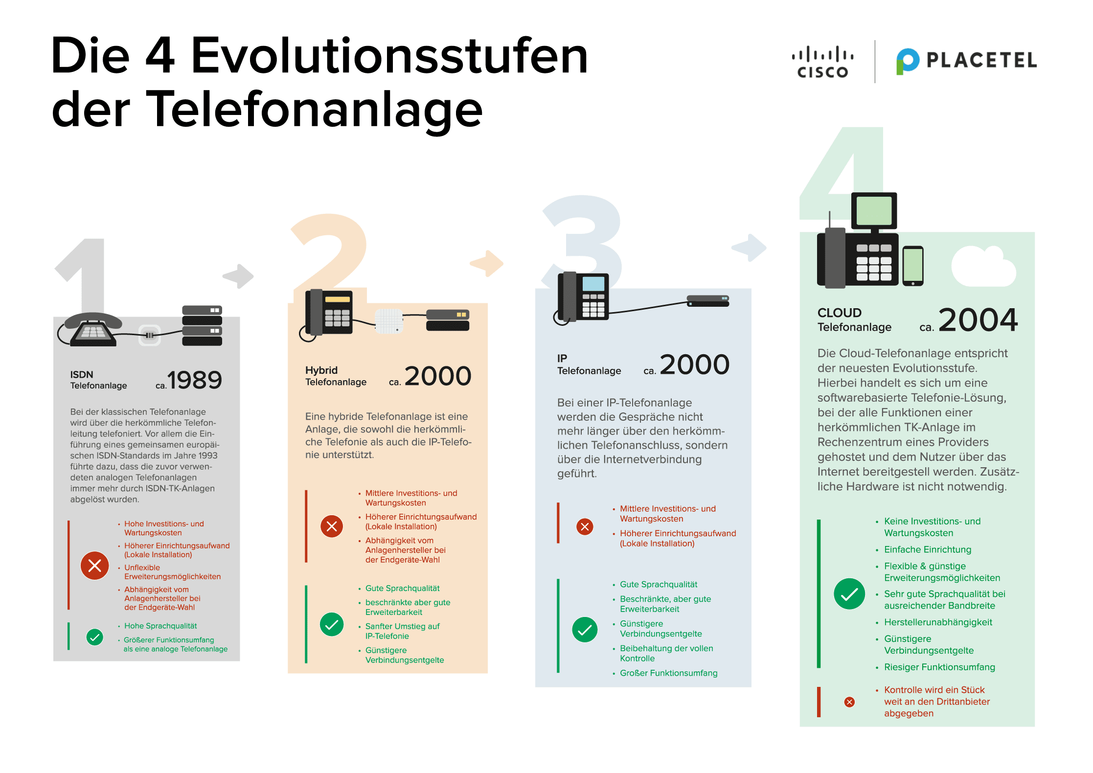 Cloud-Telefonanlagen entsprechen der neuesten Evolutionsstufe und wurden etwa 2004 in Deutschland eingeführt. Im nächsten Kapitel gehen wir im Detail auf Cloud-Telefonanlagen ein.